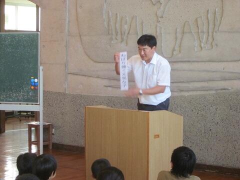 校長先生から「2学期のたくさんの行事」「ねばり強く元気な子」「中学生1年生の時の夏休みの思い出」の話がありました。2学期も全員元気で頑張ってほしいです。