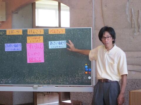 「梅雨が明けました。暑くなりますが、『ねばり強い子』を目指して頑張りましょう。」