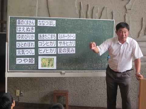 校長先生から「超早場米生産の串間」と「お米の品種」について話がありました。