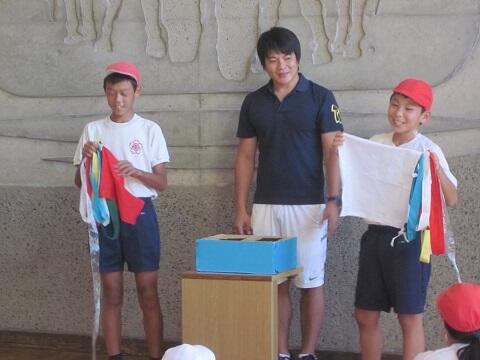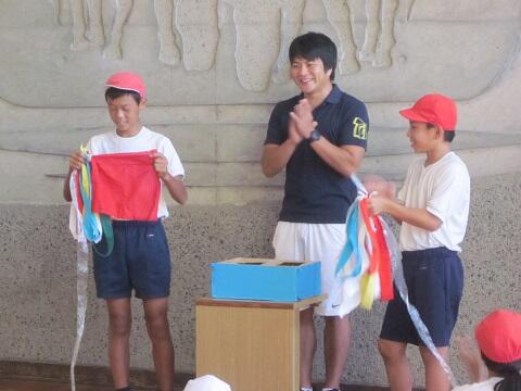 運動会結団式がありました。団長2人で色の抽選があり決定しました。本番までみんなで力を合わせてがんばってほしいです。スローガン「協力し、挑戦しよう、最後まで」