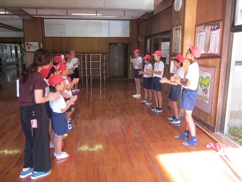 9月12日(水)地域の専門の方々を招いて御崎音頭を習いました。昨年度の運動会も踊りましたが、本年度も習ったことをしっかり頭に置いてがんばります。