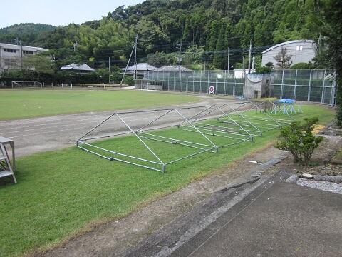 運動会の練習に向けて保護者の方々にテントの組み立てをしていただきました。