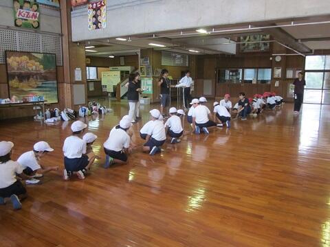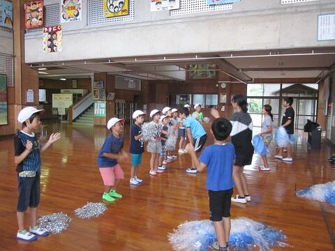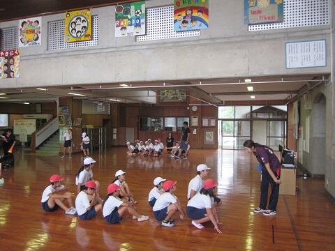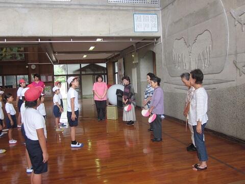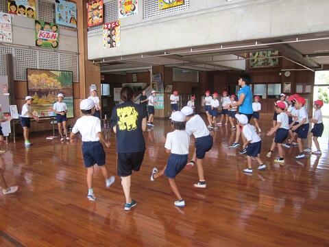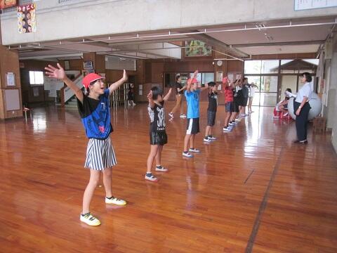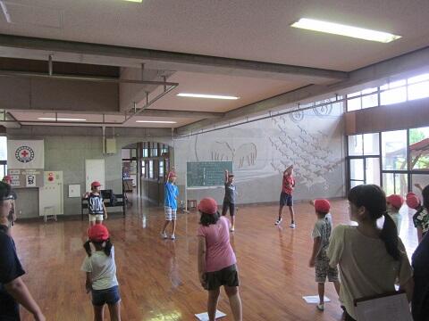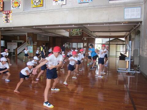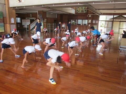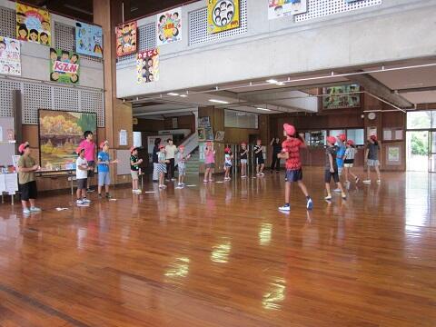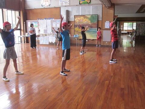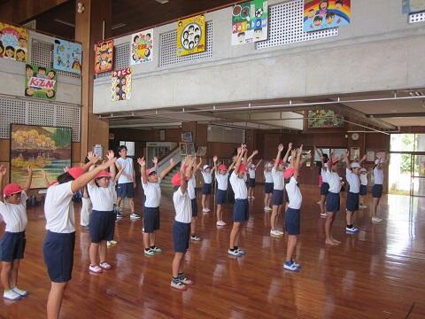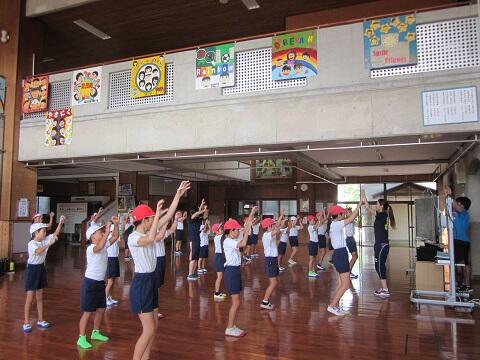 ラジオ体操の練習を全校でしました。1年生も一生懸命覚えていました。