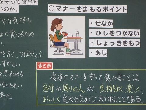 いつも全校児童みんなでランチルームで食べている給食を各学年教室で食べてマナーについて見直しています。またみんなで食べる時にこれまで以上に気持ちよく食事できるようにしたいです。