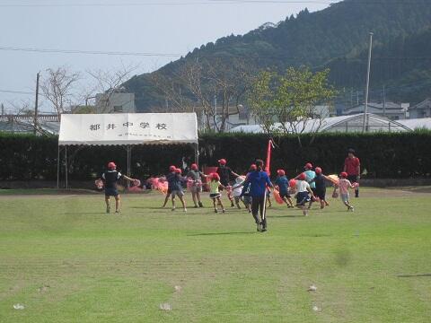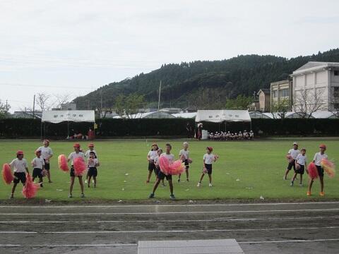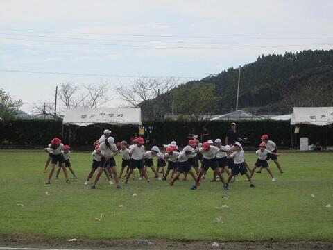 各団に分かれて応援の練習に力が入ります。全校児童みんなで運動会を盛り上げます。