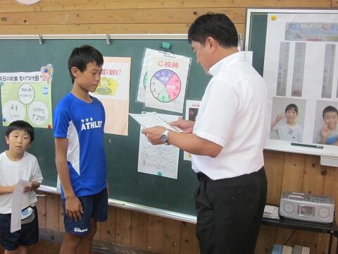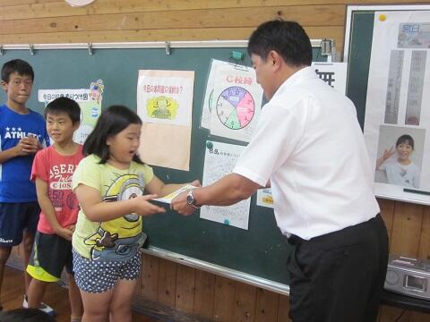 7月26日(木)都井小の見守り隊として30年活動してくださった谷村エミ子先生に感謝状を贈りました。