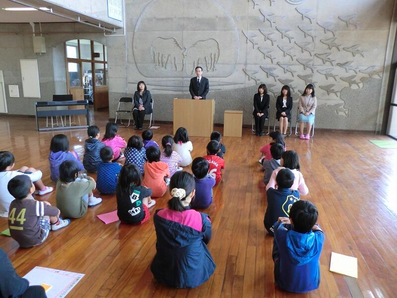 ばかりの女の先生です。歓迎の言葉は、6年生のはるかさんが原稿