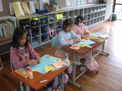 1・2年生は図工で作品づくりに取り組んでいました。みんな絵を描くのが好きで、一生懸命に取り組んでいました。