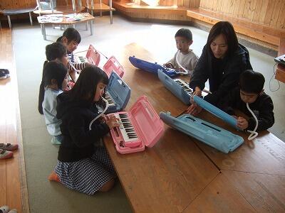 12年生は音楽で鍵盤ハーモニカを練習していました。