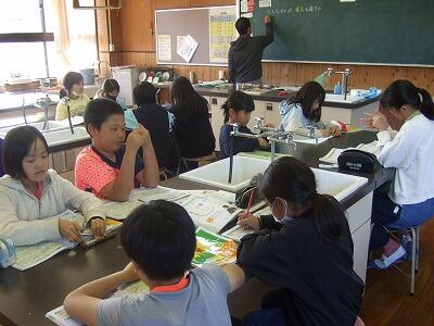 その他、授業の様子です。56年生は理科、34年生は音楽、12年生は図工の様子です。