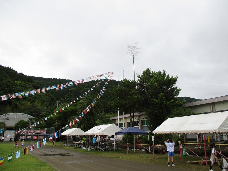 5月24日(金)運動会の前日準備を行いました。児童と職員、そして保護者の方の協力により、運動会の会場設営ができました。午前中までの雨でグラウンドがまだ乾いていない状態ではありましたが、保護者の皆様がテントを立て、大漁旗を飾り、万国旗を設置してくださり、都井小ならではの運動会の設営になりました。お忙しい中、本当にありがとうございました。明日無事に運動会が開催できることを祈っています。