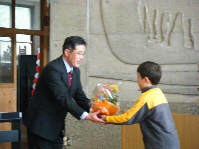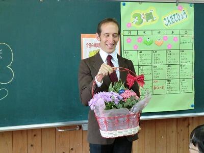 ALTのベンジャミンさんのところに待望の赤ちゃんが誕生しました。元気な男の子で名前は『ルカ』君、都井小全員でお祝いし、お花のプレゼントもしました。