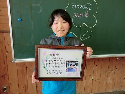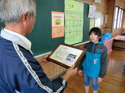 6年間1回も欠席をしなかったということで、皆勤賞の表彰がありました。