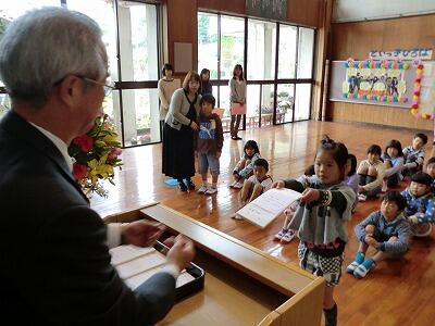 ばかりの女の先生です。歓迎の言葉は、6年生のはるかさんが原稿