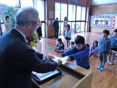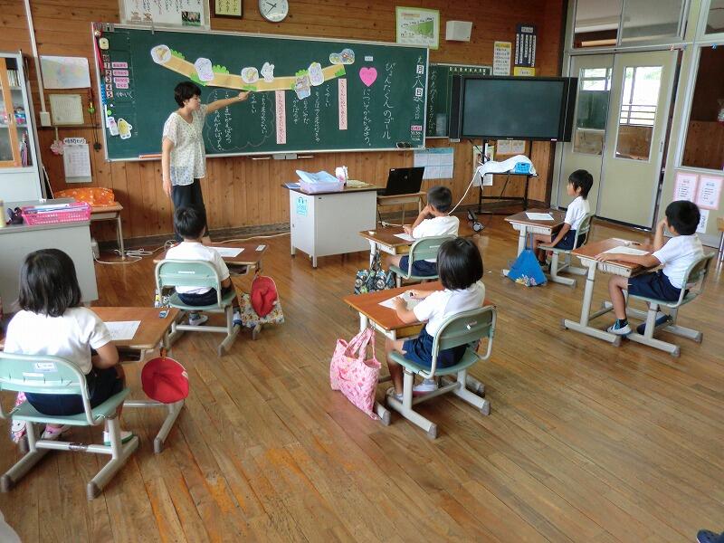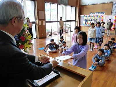今年度は、6名の児童が入学しました。氏名点呼では、大きな声で「はいっ」と返事ができ、また、「すっ]とまっすぐ手を伸ばすこともできました。小学校6年間、「自分に自信がもてて、思いやりがあり、あいさつを進んでし、作業も進んでする子」になれるようがんばっていきましょう