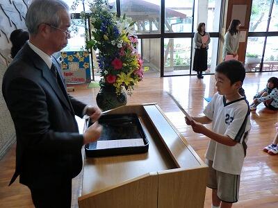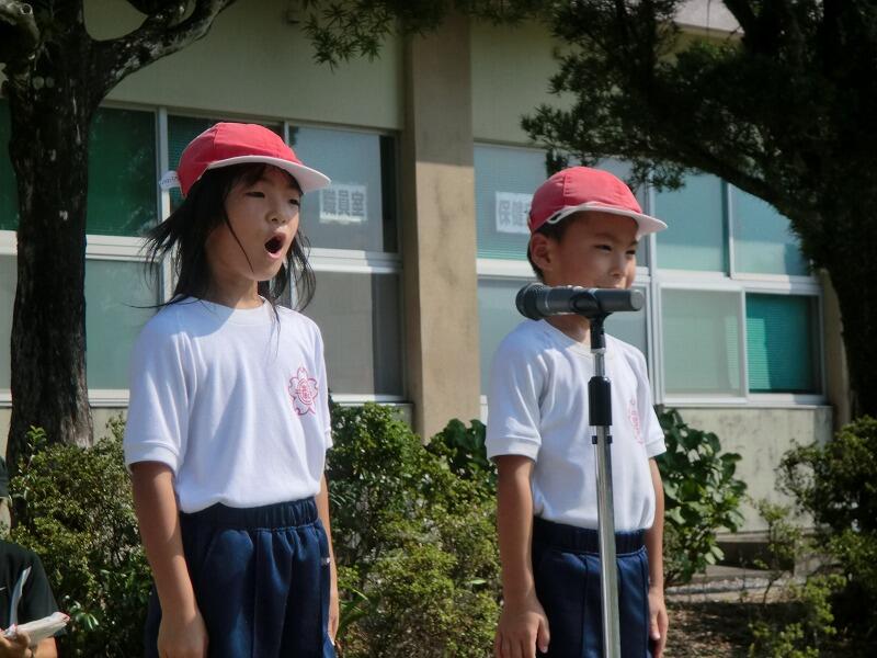 始業式では、2年生のひなのさん、3年生のりんたろうさん、4年生