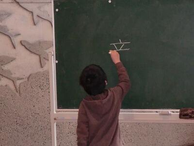 串間市では、小中高一貫教育を推し進めています。本校も特に、都井中学校との連携を密にしていますが、現在、都井中学校の数学担当の中藤先生が6年生4人に授業をしくださっています。「比とその利用」の単元を丸々指導していただきます。本日は、第2回目(2時間目)の授業でした。中藤先生には、快く授業を引き受けてくださり、感謝しております。児童4人も目の輝きが違います!