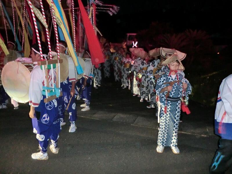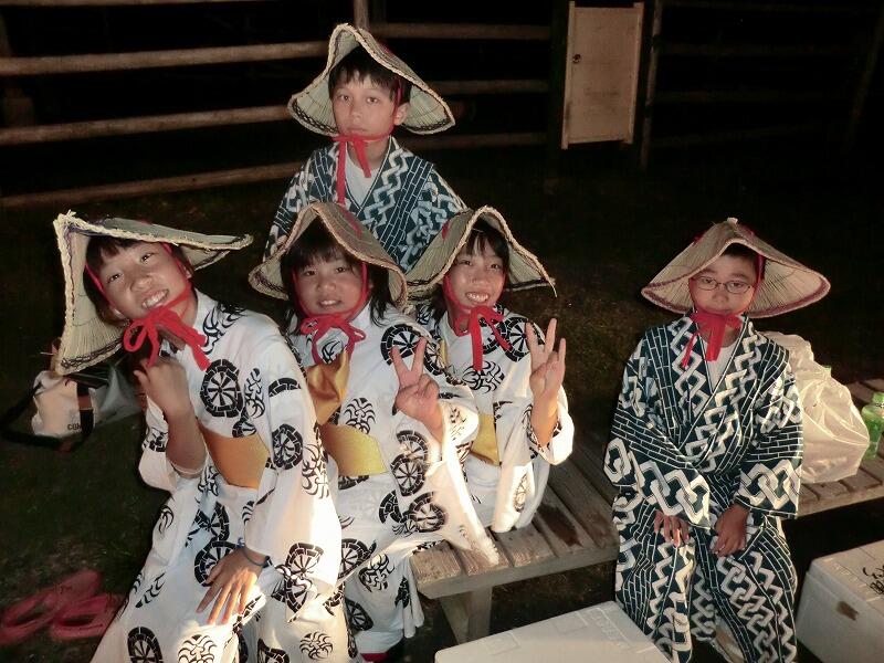 8/23~8/24の2日間、串間市三大祭りの一つ、「都井岬火祭り」が行われました。この祭りに、5・6年児童5名は、臼太鼓祭りで出演しました。臼太鼓踊り(うでこ踊り)は、都井小5・6年、都井中全生徒、都井中職員、都井中卒業生(高校生・大学生)、地区の婦人部のみなさんの総勢40名あまりで構成され、2日間とも19:45からの出演でした。