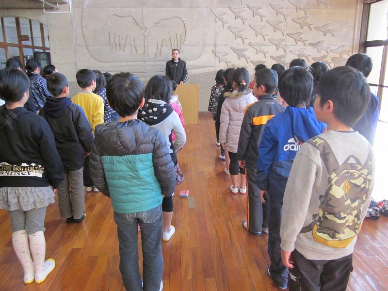 2月3日(火)の朝の活動は「全校朝会」でした。まずは校長先生の話。1年には4つの節があることと「立春」について話がありました。谷口先生からは、月目標の「外で元気よく遊ぼう」について話がありました。また、体力を付けるための具体的な運動の仕方についてわかりやすく話をしてくれました。