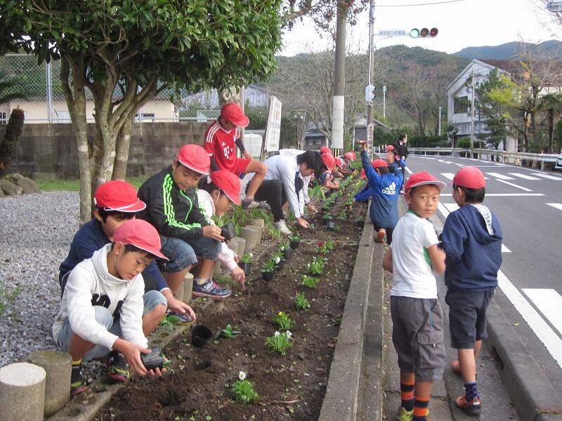 11/26(木)、朝のボランティア活動の時間に花の苗を植えました!