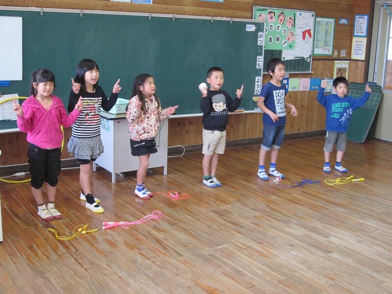 3月24日(火)の5校時に、1年生と5年生の「喜び会」がありました。1年生の出し物は、妖怪ウォッチダンスをしながら、一人ずつなわとびの得意技を披露!5年生は、デザートを作り1年生に振る舞い、ビンゴゲームなども進めてくれました。