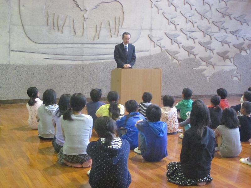 11/2(月)、朝の活動は「全校朝会」でした。校長先生及び図師先生の話がありました。