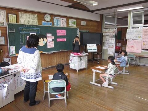 1年生が養護教諭の先生と「目の学習」をして、目の役割について勉強しました。これからも目を大切にしていきます。