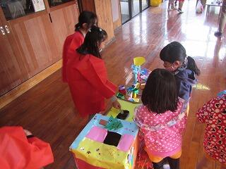 1、2年生が保育園生を招いて秋祭りを行いました。音楽をプレゼントしたり出店を開いて楽しませたりしました。1年生は昨年度遊んでもらった側で、今回はおもてなし側です。本校に続くよい伝統です。今の年長児さんが来年度もてなす側になって保育園生を楽しませていることでしょう。