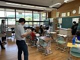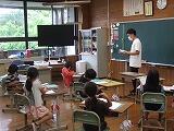 今日は外国語の櫻木先生が来られて各学年とも授業を受けました。クイズ形式の外国語の問題など楽しく取り組んでいました。