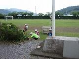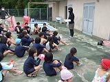 今日は晴れていたので暑い中での作業でしたが、たまに水をかけてもらいながら大喜びで掃除をがんばっていました。1・2年生はプールの外の草取りでした。こちらも一生懸命頑張っていました。