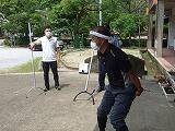 今日は教頭先生が弦の巻き付いた中庭の小屋をきれいにしようと暑い中頑張っていらっしゃいました。