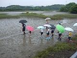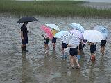 今日は3・4年生がバスに乗って本城干潟の見学に行きました。梅雨の時期に入り、あいにくの雨の中の見学となりましたが、子どもたちはとても楽しみにしていたので雨でもお構いなし。干潟のカニやハゼやシジミなどを見つけて大喜びでした。しかし、中には泥んこに長靴がはまってしまう子やもっていったリュックが落ちてどろぴしゃになる子もいて大変でした!それでも、子どもたちには楽しい経験になったようです。干潟の生き物は年々少なくなっているのとのことでした。川や海をきれいにして生き物たちを守っていきたいものです。