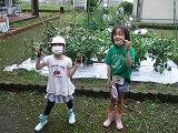 1・2年生は一緒に野菜の収穫をしました。ナスやピーマン、キュウリなど美味しそうな野菜がたくさんとれました。今日はお家で美味しいサラダが出来そうです。