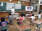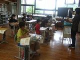 今日は外国語の櫻木先生が来られて各学年とも授業を受けました。クイズ形式の外国語の問題など楽しく取り組んでいました。