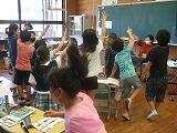 34年生は音楽の授業で音楽に合わせてゲームをしたりリコーダーを演奏したりして暑さを吹き飛ばしていました。