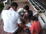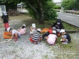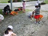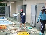 今日は晴れていたので暑い中での作業でしたが、たまに水をかけてもらいながら大喜びで掃除をがんばっていました。1・2年生はプールの外の草取りでした。こちらも一生懸命頑張っていました。