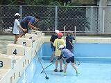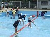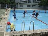 今日は全校児童でプールの清掃をしました。もうすぐ水泳の授業が始まります。みんなとっても楽しみにしているらしく、一生懸命プールの内側やプールサイドをピカピカに磨いていました。