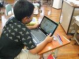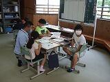 3~6年生は国語の授業をがんばっていました。一人一台のタブレットを使ったり、話合いをしたりしながら自学と先生と学ぶ時間の入った複式の授業に取り組んでいました。