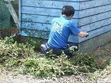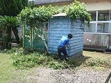 今日は教頭先生が弦の巻き付いた中庭の小屋をきれいにしようと暑い中頑張っていらっしゃいました。