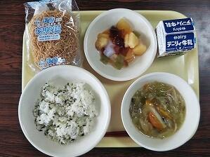 減量わかめごはん、皿うどん(長崎チャーメンと皿うどんの具)、フルートポンチ、牛乳