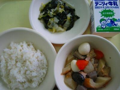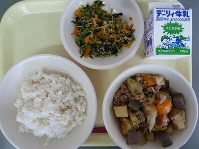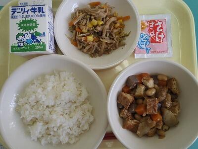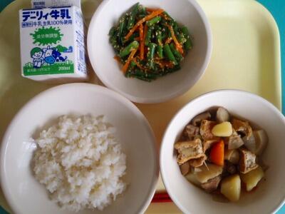 今日は和食の献立でした。みそ煮は子どもたちは苦手なのではないかと思っていましたが、残菜はそんなにありませんでした。こんにゃく、ごぼう、たけのこなど、噛みごたえのある食材が多く、あごが鍛えられたのではないかと思います。