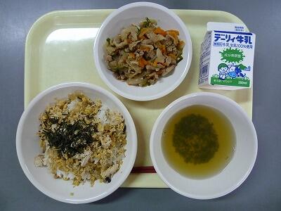 「料理の名前に”五目”と付くものは、たくさんの具が入っているという意味で使われます。」という、お昼の放送をきいて、どんな具が入っているか観察しながら食べた児童もいたようです。