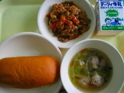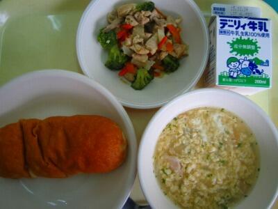 今日は中華のメニューでした。味がしっかり付いていて、ごはんも食べやすかったのか、ごはんの残菜がいつもより少なかったように感じます。給食室からおいしそうなにおいが漂ってくると、1年生は「今すぐ食べたい!」と給食を楽しみにしていました。