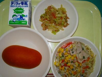 グルメレポート:コーンラーメンにもやしがたくさん入っていておいしかったです。(2年1組児童 S)