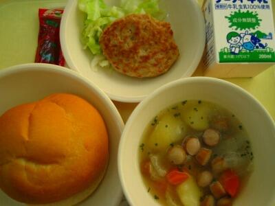 大豆は「畑の肉」と呼ばれるほど栄養価の高い食材です。今日は牛肉と一緒に洋風煮込みにしました。コッペパンとの相性もよく、児童にも食べやすかったようです。キャベツとハムのソテーも、シャキシャキとした食感が残っていておいしかったです。