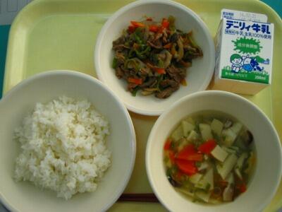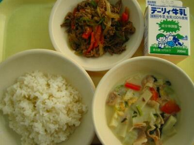 今日の小さいおかずは、牛肉のピリ辛炒めでした。歯ごたえのある牛肉やレンコンがたくさん入っていたので、よく噛んで食べてもらえたのではないかと思います。鉄分もたくさん含まれる牛肉なので、成長期の児童たちにはしっかり食べてほしいですね。
