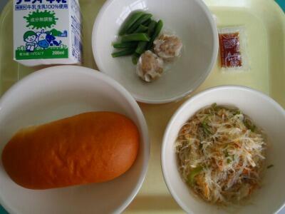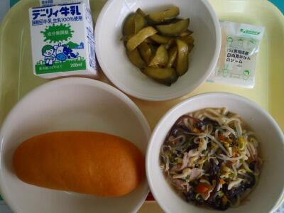 みんなが大好きなチャンポンでした。魚介類のほかに野菜がたっぷり入っていたのですが、残さずモリモリ食べていました。ごま油炒めはキャベツが多く入っていましたが、今日も完食でした!