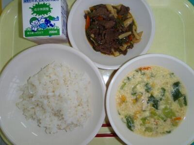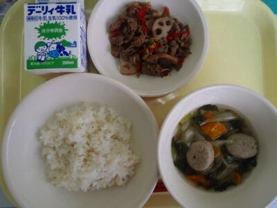 今日はホクホクのじゃがいもたっぷりの肉じゃがでした。いんげんが苦手な児童がいるものの、今日も残さず食べることができました。