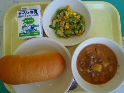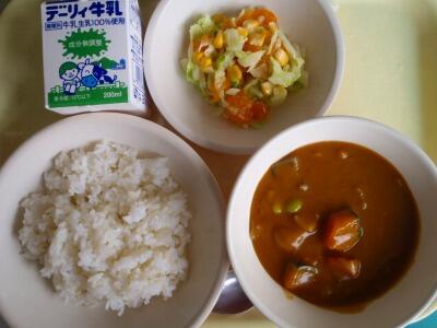 カレーの日はとても早く食べ終わります。そして、「カレーをもっと多くしてほしいなー!!」という声が聞かれます。給食では、月に1回はカレーの日があるのですが、毎回このような会話があるのは、やはり不動の人気メニューだからですね。