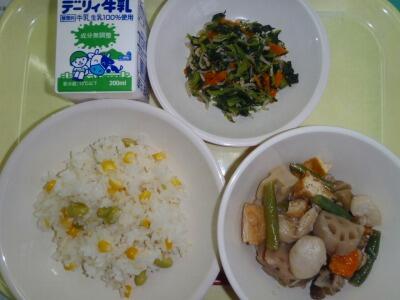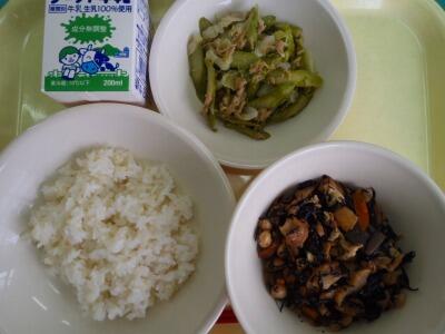 今日は、和食メニューでした。大豆や小松菜、ちりめんじゃこなどが苦手な児童もいましたが、残すことなく食べることができたようです。健康と成長のために、好き嫌いなく食べてほしいと思います。